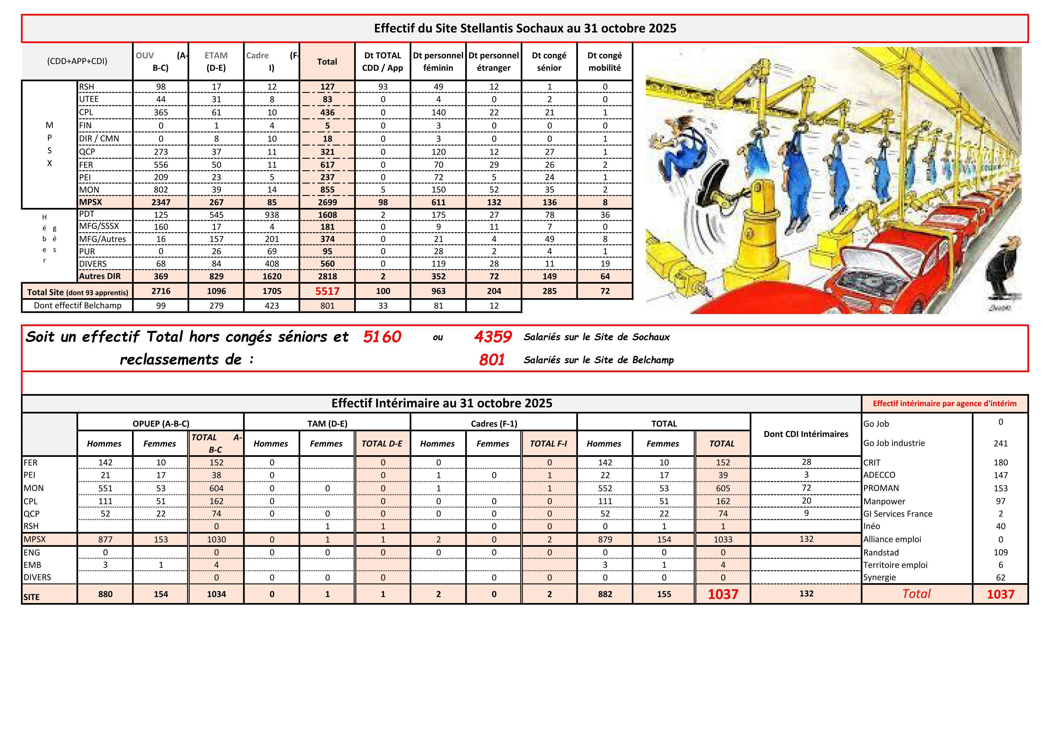 Effectif CDI - CDD - Intérimaires du site de Sochaux / Belchamp au 31 octobre 2025