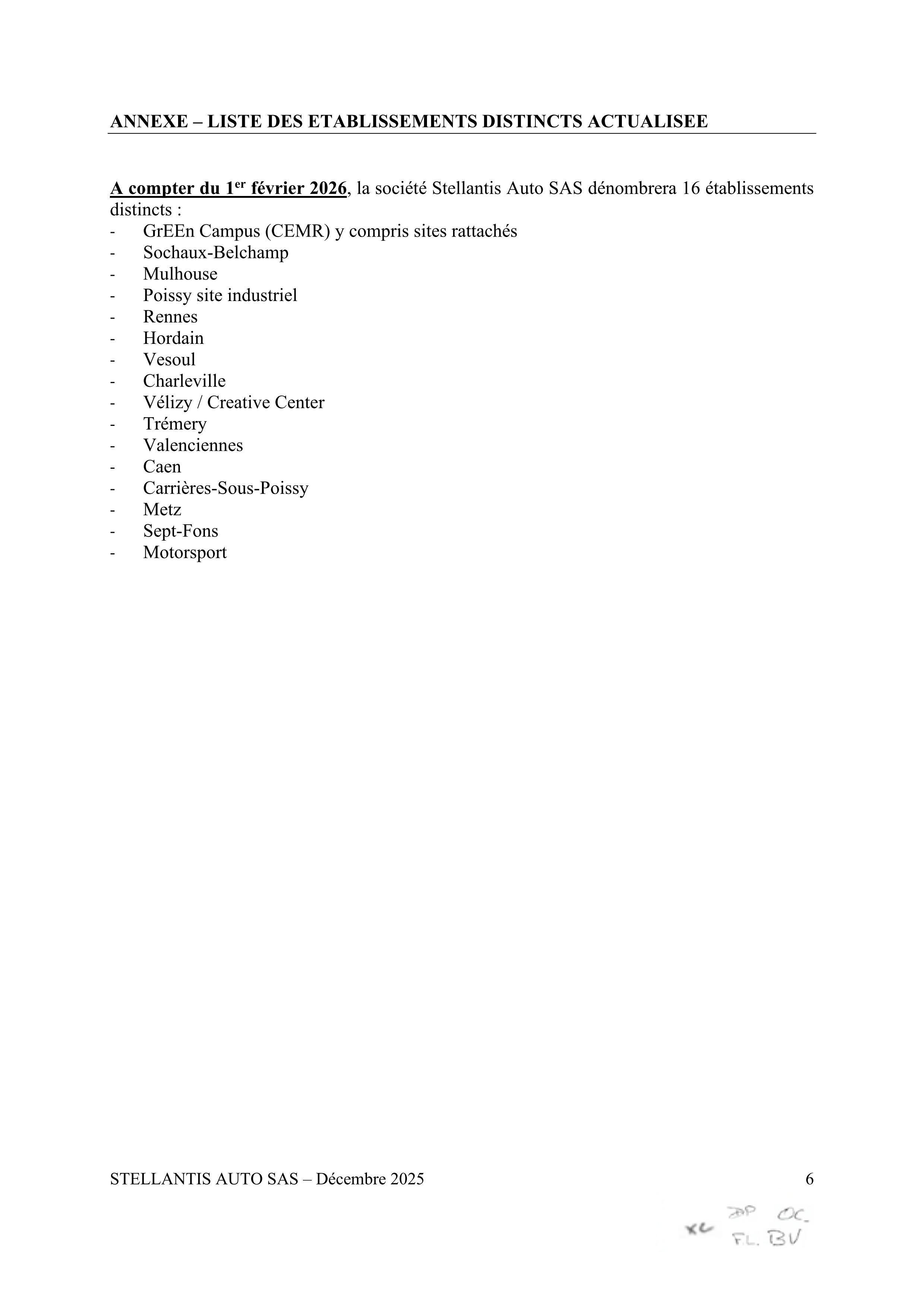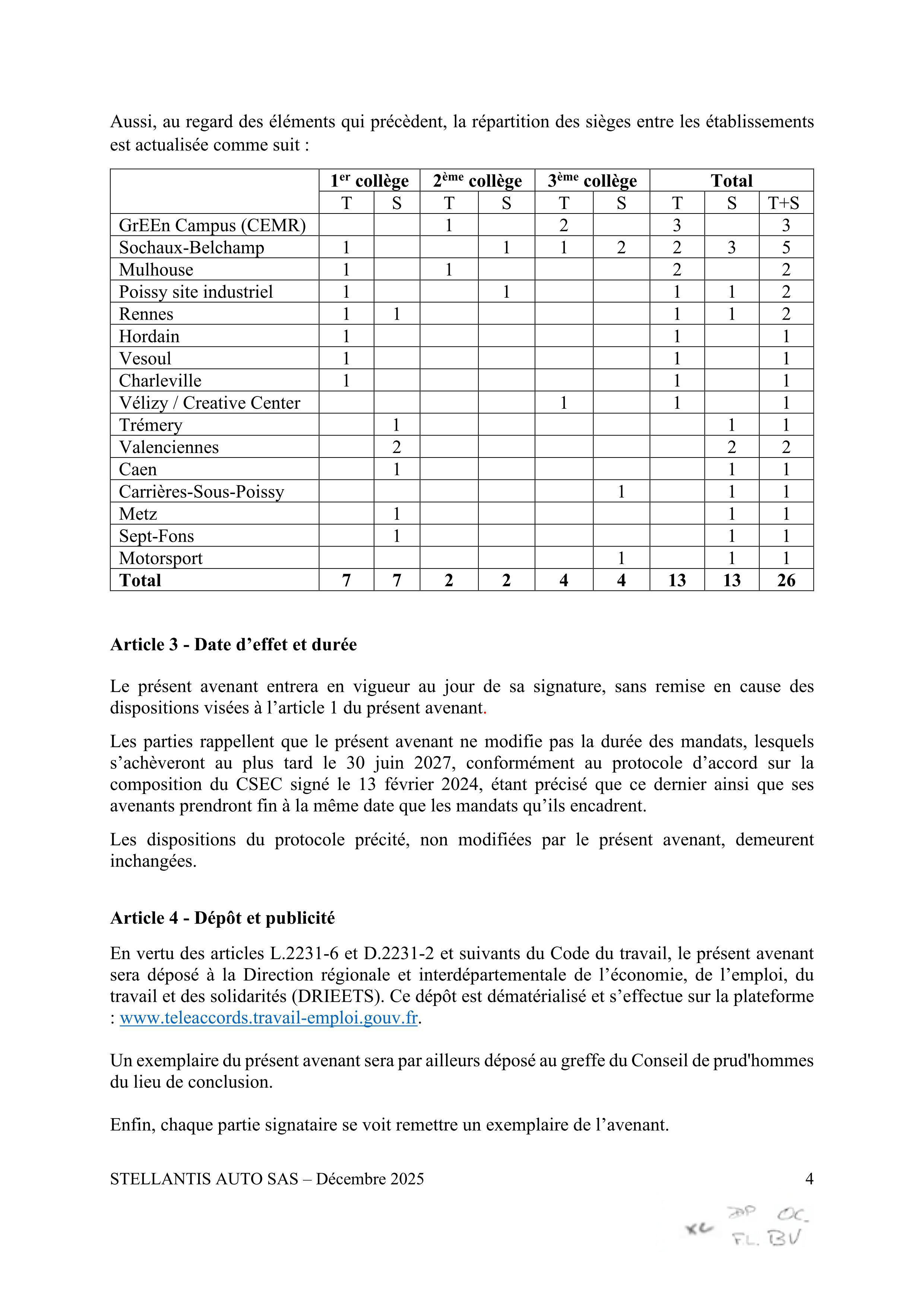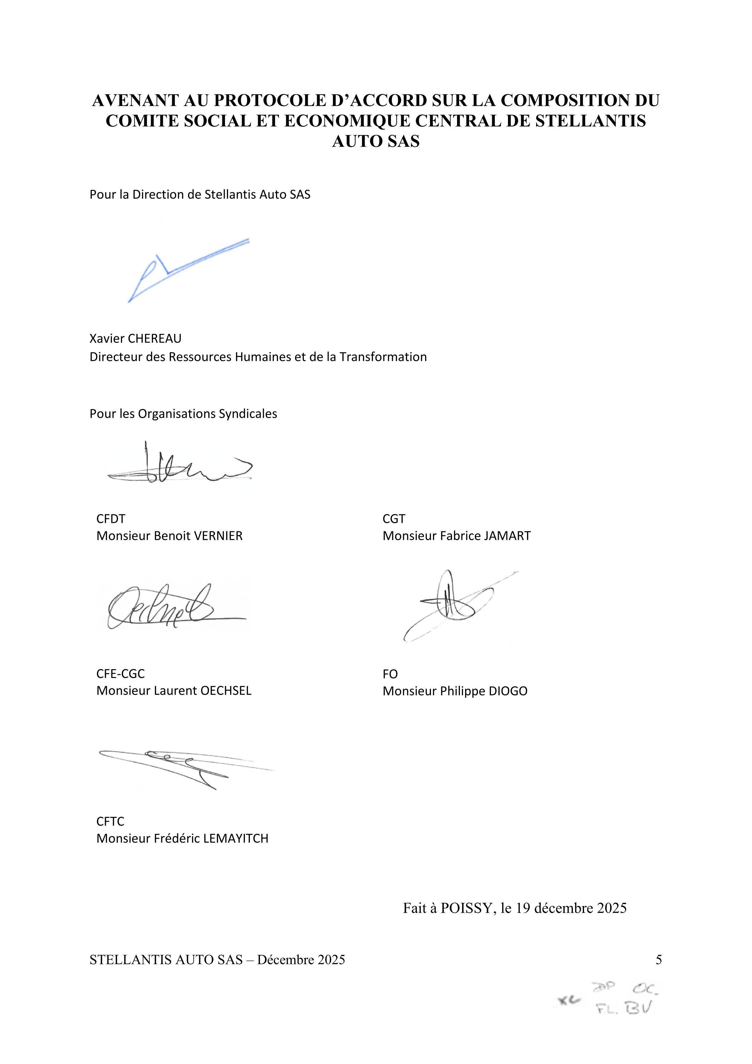 Avenant au protocole d'accord sur la composition du CSEC de Stellantis Auto SAS décembre 2025 signé