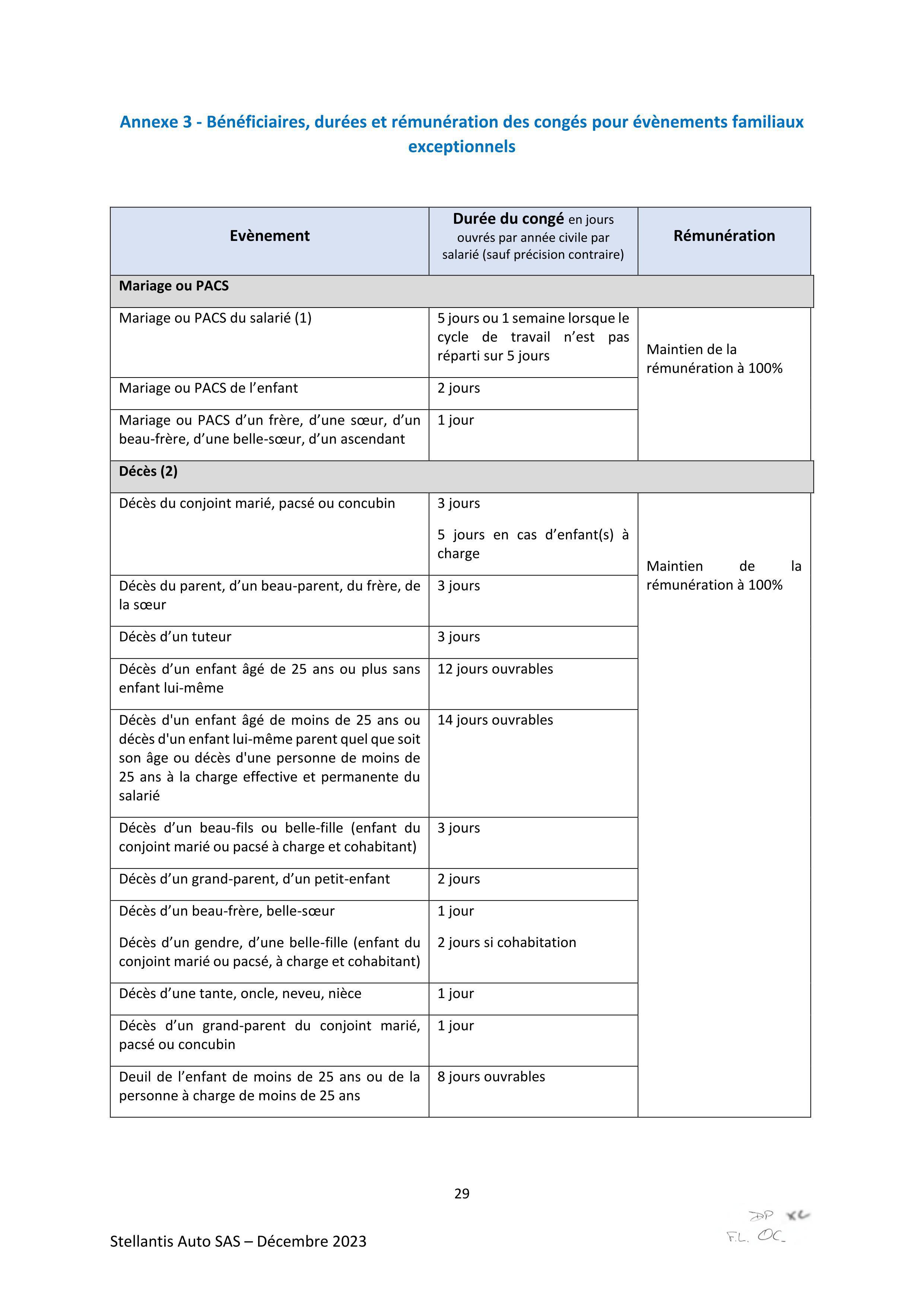 Durées et rémunération des congés pour évènements familiaux exceptionnels