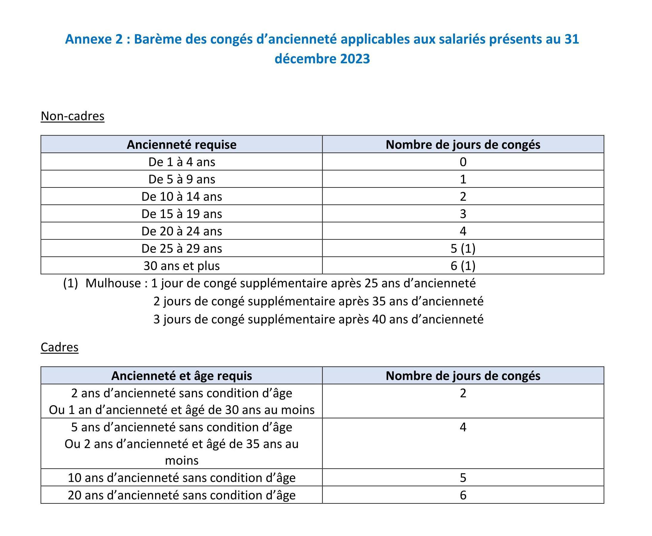 Congés d'ancienneté applicables aux salariés embauchés avant le 31/12/2023